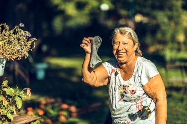 Trotz Sonnenmomenten hat Brigitte gut vorgesorgt und schon die Socken für die späteren, kühlen Stunden parat!